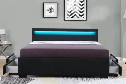 Storage Drawers Bed with LED Lights Black
