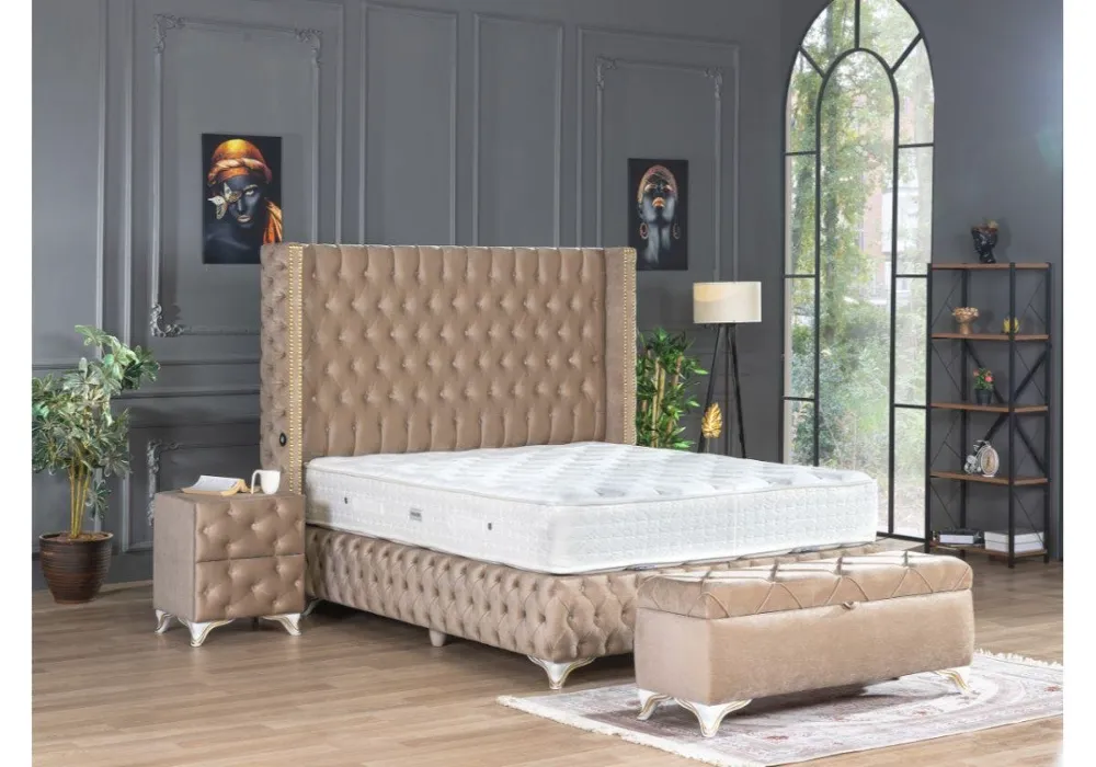 • Headboard: The headboard measures 25 cm deep and 156 cm high, providing comfortable back support and creating an attractive focal point in the bedroom. Its design is carefully crafted to add a touch of elegance to the entire bed.