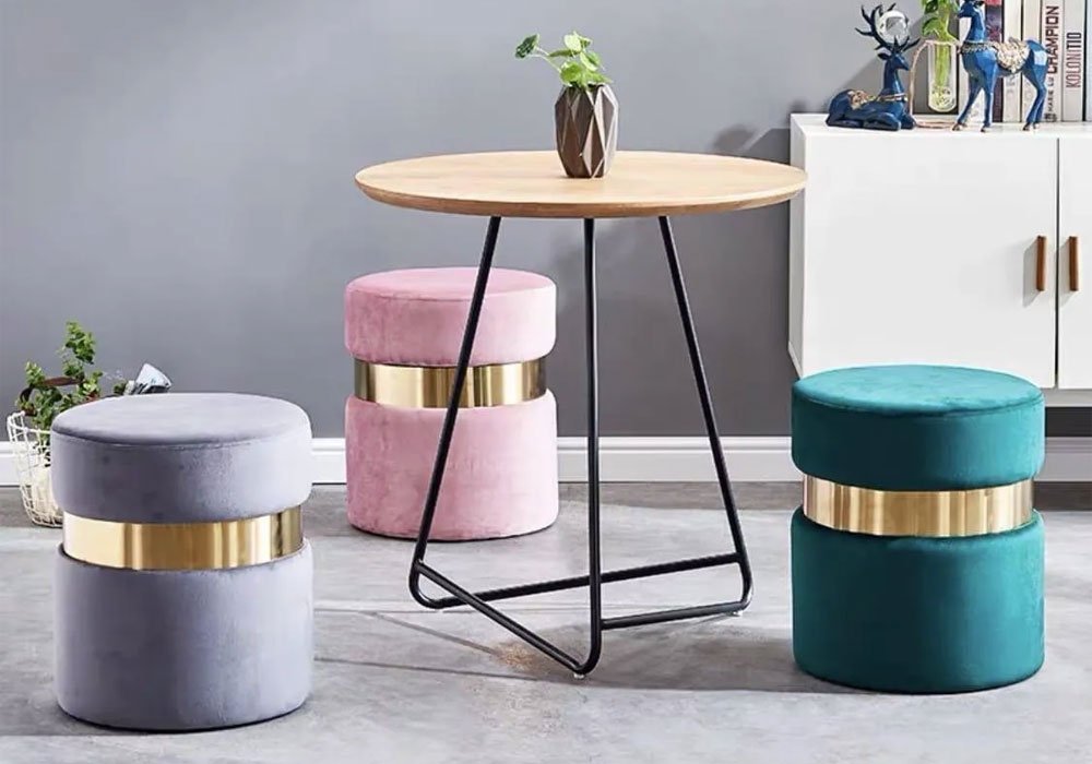 Whether to brighten your living room, bedroom,entranceWhether it’s for a child’s room or any other space, this is the trendy pouf you need. You can use it to stretch your legs, for example, or as an extra seat for your guests. A minimalist yet elegant pouf with a stylish gold metal band that…will bring charmunique to your spaces.