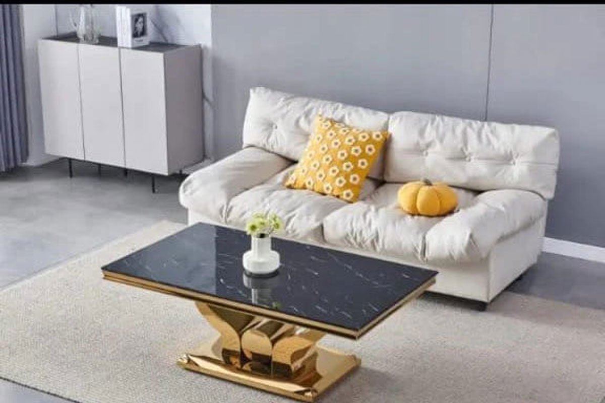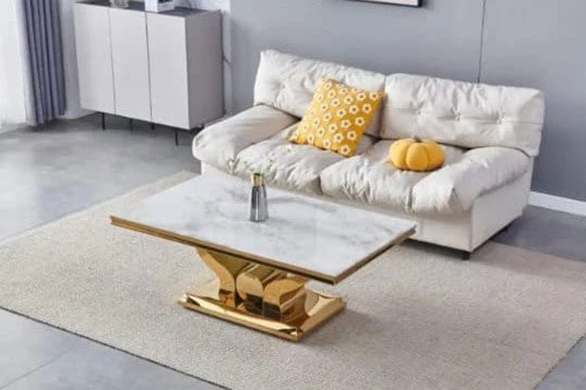 Dimensions: Length: 120 cm, Width: 70 cm, Height: 45 cm. White marble top. The Gold Coffee Table is a style statement with its versatile design and striking gold legs. The top, with its varied shades, offers a rich aesthetic…