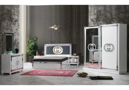 This modern bed will undoubtedly add a touch of contemporary style to your bedroom. Its upholstered headboard features LED lighting, allowing you to customize the color and lighting effects to your liking. The bed’s elegant design is further enhanced by its faux leather upholstery. Stability is ensured by four sturdy legs, a central support beam, and two additional support legs under the slatted base, which is included.