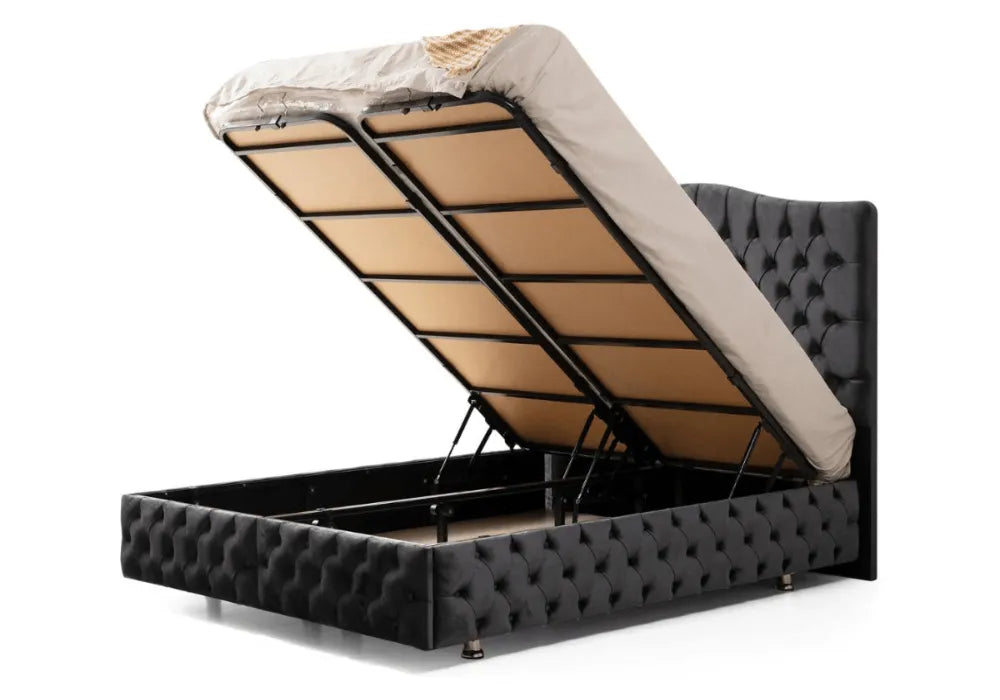 The Paris Velvet Storage Bed with Upholstered Headboard transcends the simple function of a bed to become the focal point of your bedroom. Its elegant design in Anthracite or Beige offers personalization without compromising luxury.