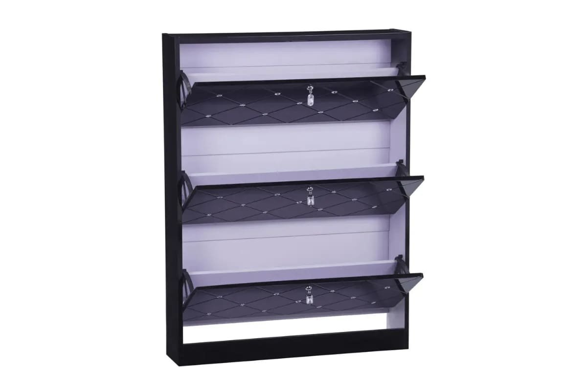 Rhinestone Shoe Cabinet with 3 Doors, Black, 110x17x80 cm