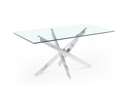 The clear glass top adds a touch of lightness and modernity to the table. Its transparency also highlights the design of the silver legs.