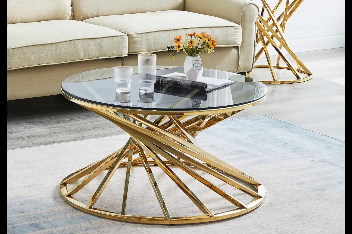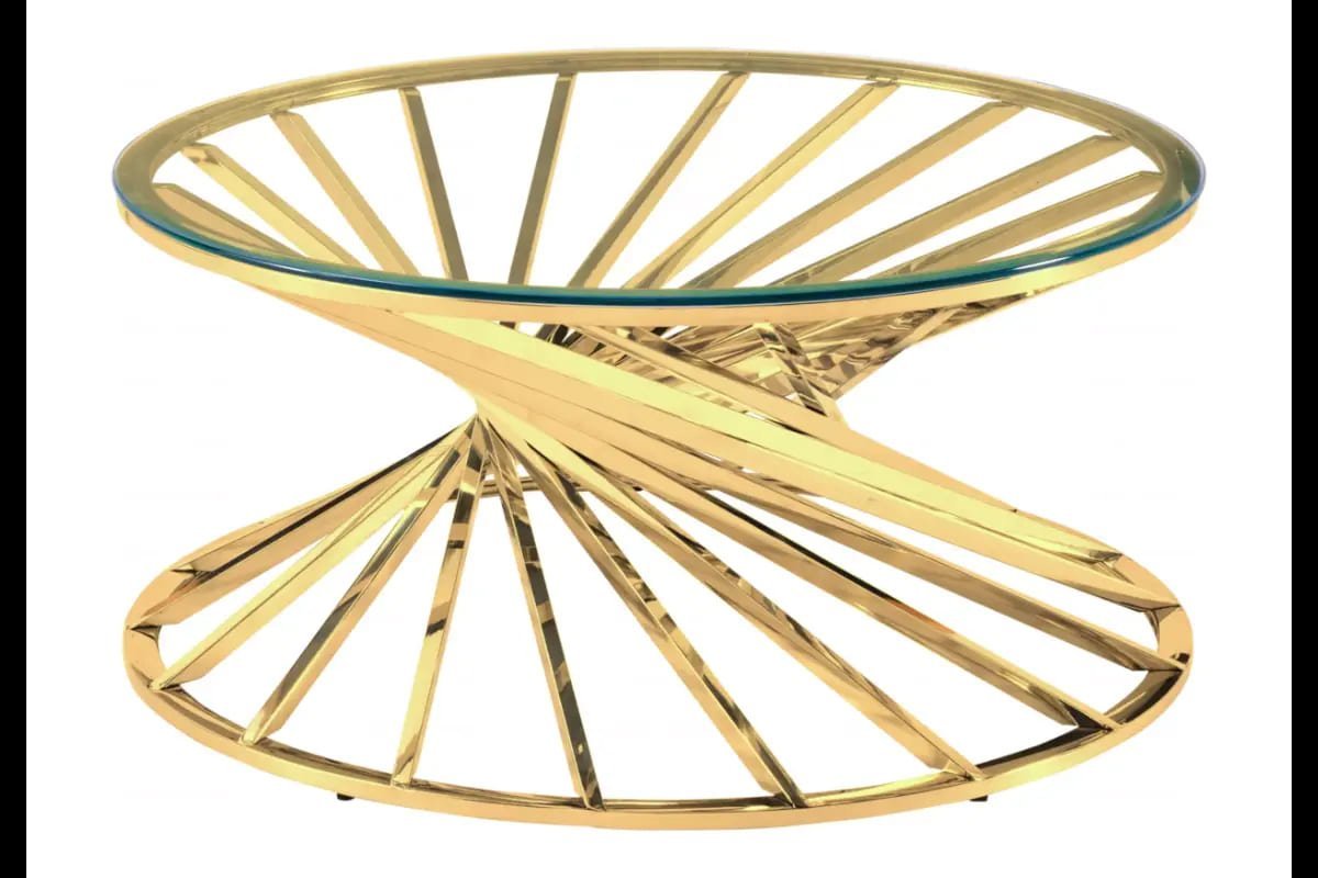What is the RUBY round coffee table in golden glass?