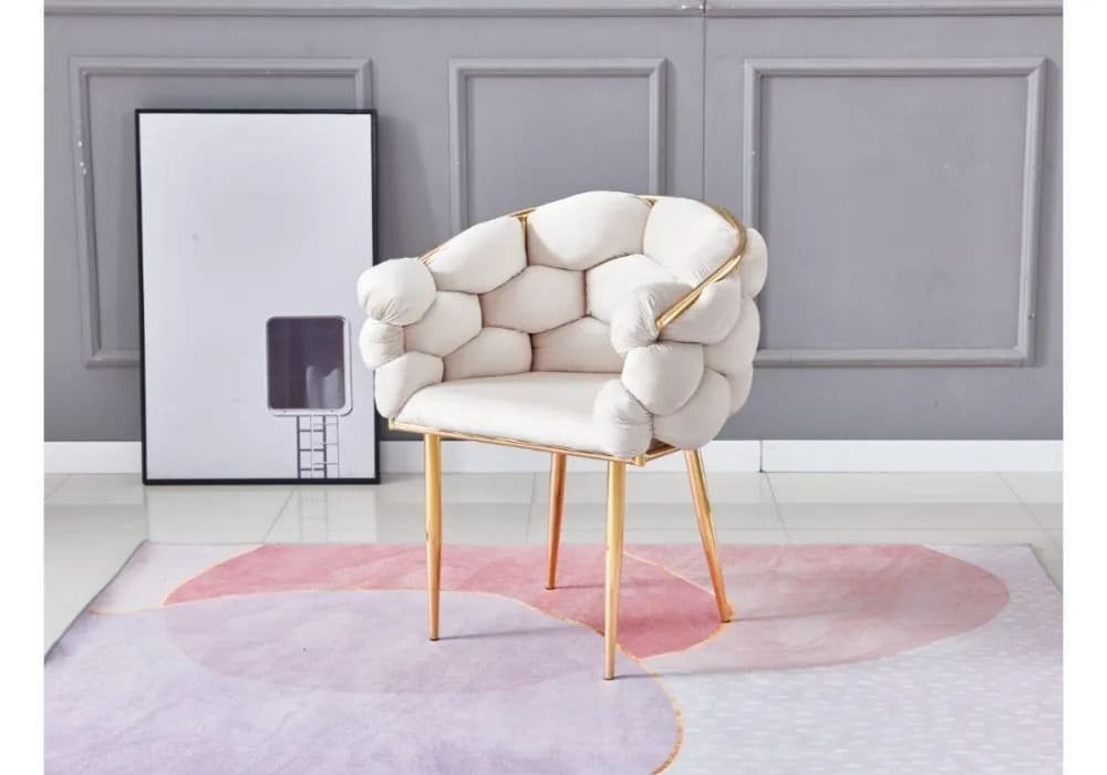With their distinctive design, the “Ballon” chairs bring a unique aesthetic to your dining room, living room, or any other place you choose to put them. The gold velvet can create an attractive and captivating visual effect.