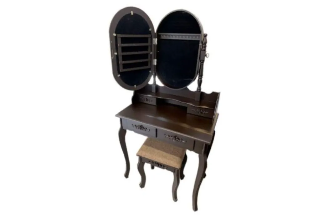 Whether for your daily routine or getting ready for a special occasion, this brown vanity table with stool is a perfect choice to add a touch of sophistication to your personal beauty space.